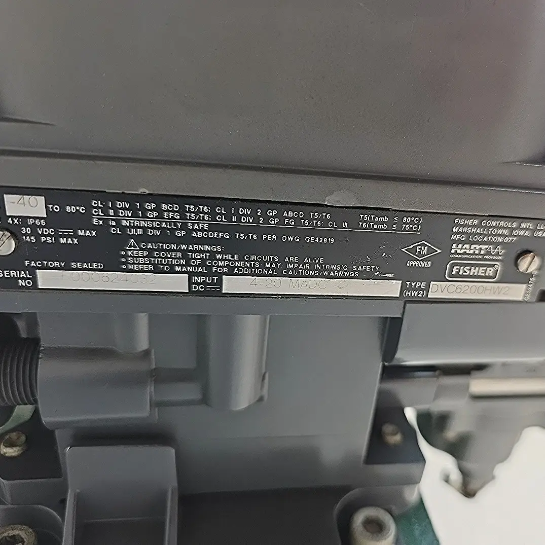 - Positioner: FIELDVUE DVC6200 (HW2), 4–20 mA input