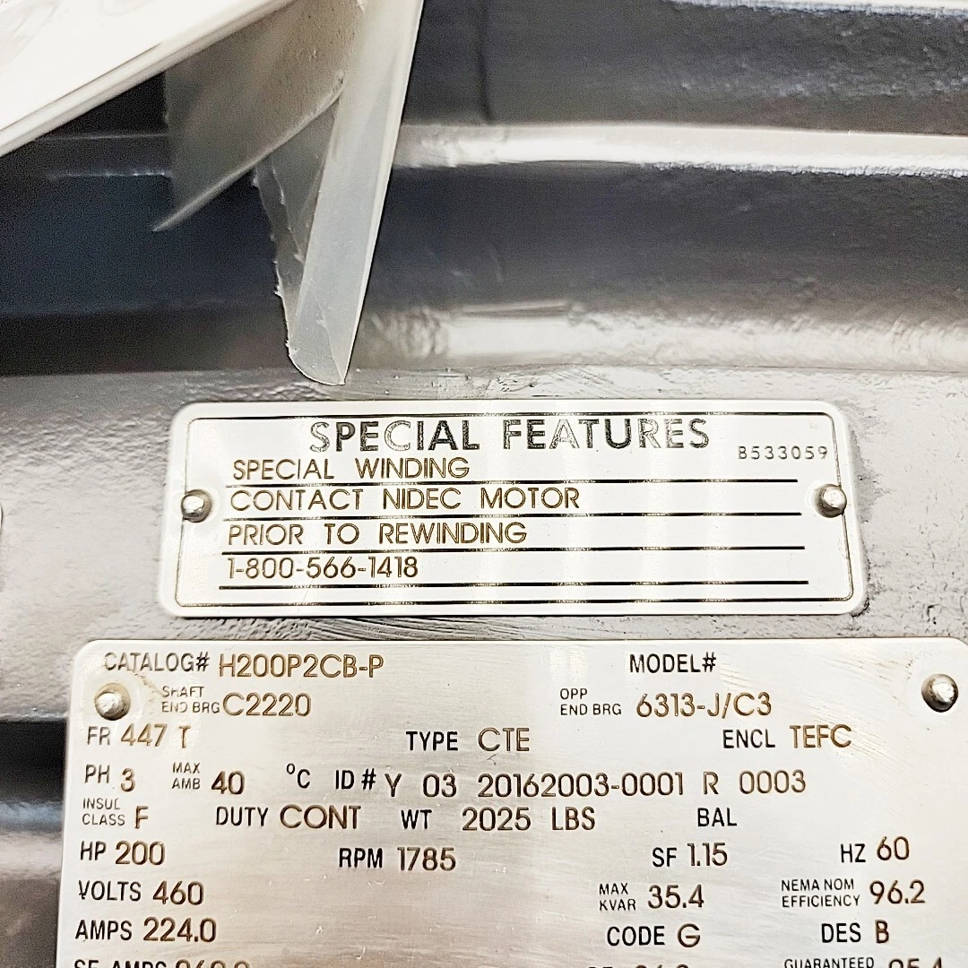 US Motors 6313-J/C3 – 200 HP Motor, 1785 RPM, 3 Phase TEFC Motor