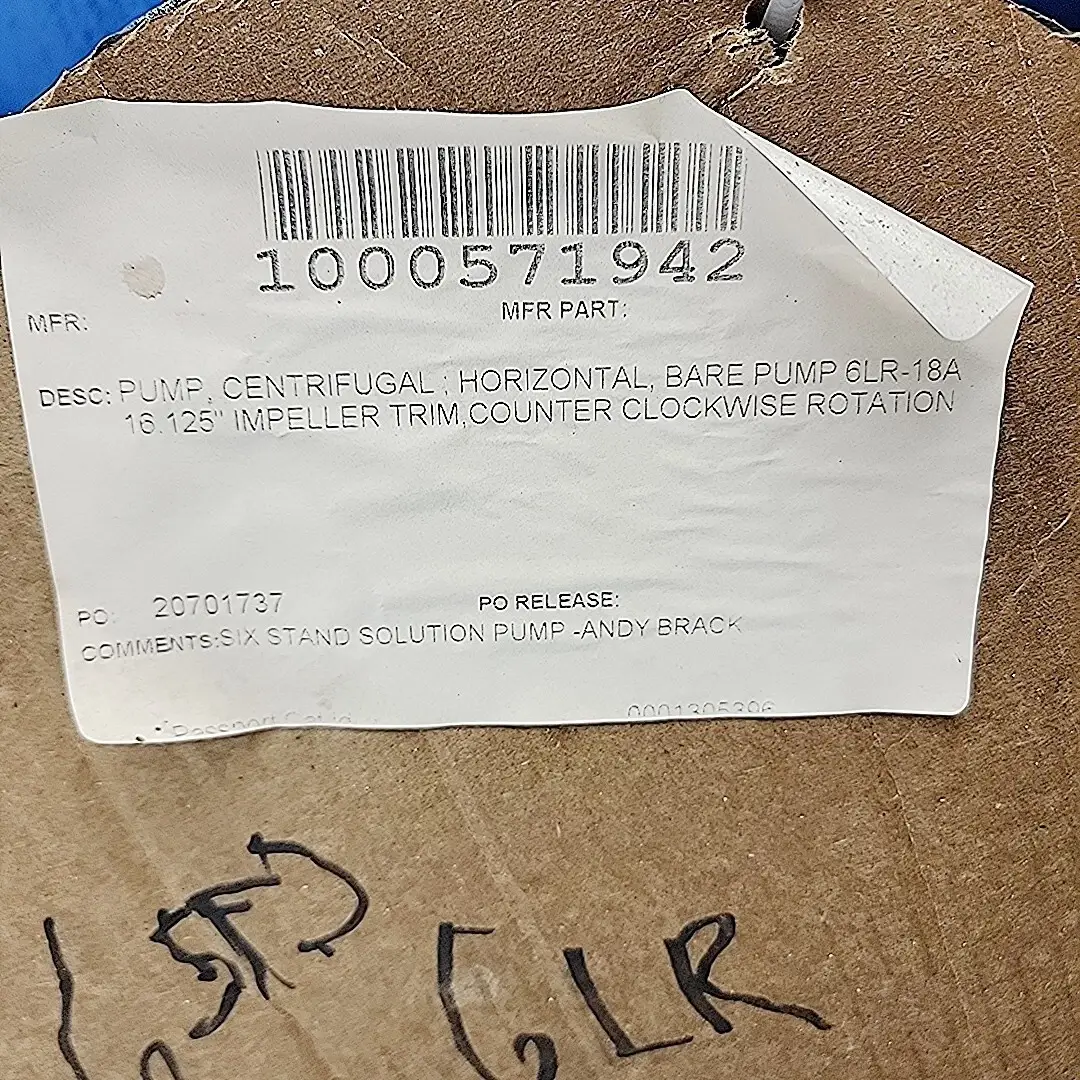 6LR-18A with a 16.125″ impeller trim and counter-clockwise (CCW) rotation per tag.